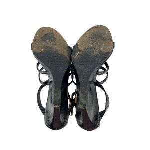 Givenchy Black Patent Crinkled Leather Open Toe Wedges size 7