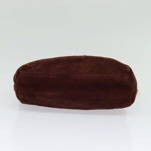 PRADA Chain Shoulder Bag Suede Brown Gold Auth
