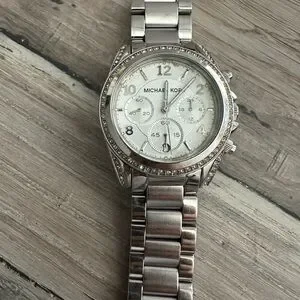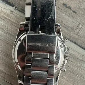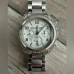 Stylish silver watch with chronograph features. Sleek metal band and detailed face. Beautiful, and elegant- needs battery