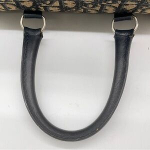 Auth Christian Dior Trotter Canvas X Leather Navy x Brown Boston Bag