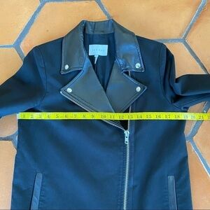 SANDRO Paris Zipped Biker Moto Lamb Leather / Cotton Jacket Size 38 US 6 8. Excellent condition with no flaws. Stunning piece with buttery lamb leather accents and collar. Thick cotton knit and structured look. See measurements in pictures.