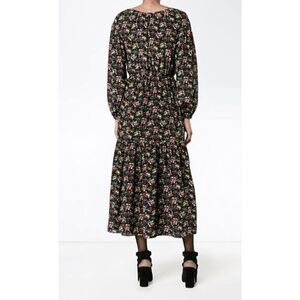 Saint Laurent Bouquet-Print Peasant Midi Dress, Black Pattern Women’s Sz Small S