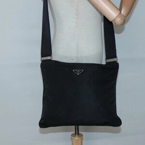 PRADA Shoulder Bag Nylon Black Silver Auth 132150
