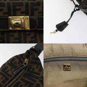 FENDI Zucca Canvas Hand Bag Brown Black Gold