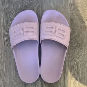 Chic Balenciaga slides in a soft lavender hue. Ideal for relaxed outings. Size 36