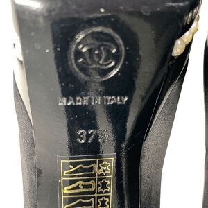 Chanel Pearl Platform Pumps Size 37.5 US 6.5-7 Black Satin Cap Toe High Heels