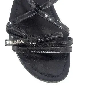 These WELL LOVED Prada wedge sandals blend luxury with comfort, featuring a sleek patent leather design. The elegant bow detail and iconic Prada branding offer a sophisticated touch while the wedge heel provides stability and style. Ideal for both formal and casual outfits, they ensure you step out in confidence.