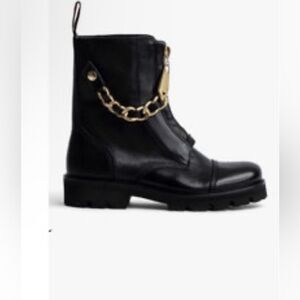 ZADIG VOLTAIRE JOE CECILIA SMOOTH COWSKIN BOOT New in box with dust bag. French designer, lightweight combat boot. Accent gold chain makes these an edgy closet staple.