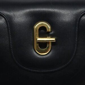 GUCCI Hand Bag Leather Navy Gold Auth e