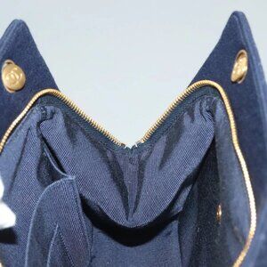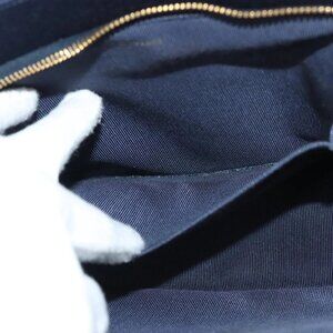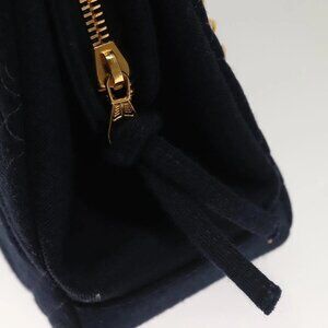 CHANEL Matelasse Chain Shoulder Bag cotton Navy Gold CC Auth