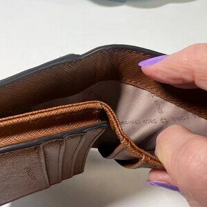 Michael Kors Tan Pebbled Leather Wallet MK Logo Snap Closure zipper Coin Pocket Unisex