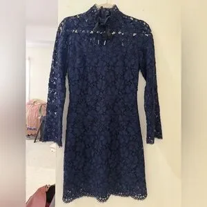 Chic navy lace dress with long sleeves. Perfect for elegant occasions.