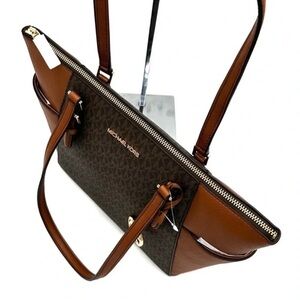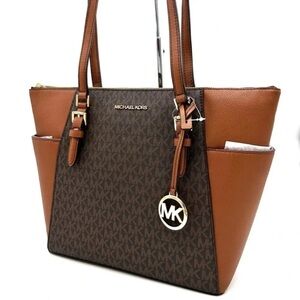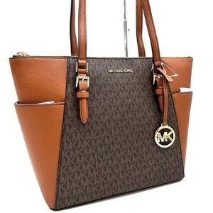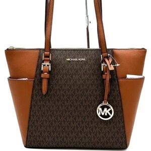 Michael Kors Large Charlotte Tote Bag Luggage Leather Brown