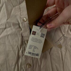 NWT Burberry London Women US 6 (40) Button Up Shirt Beige Cotton Stretch Ladies
