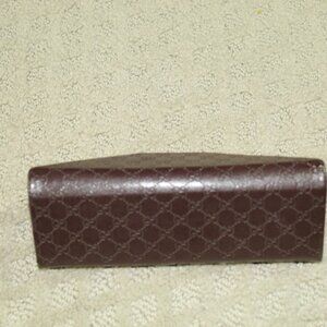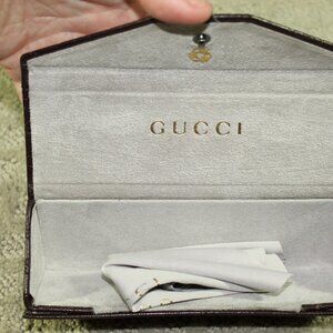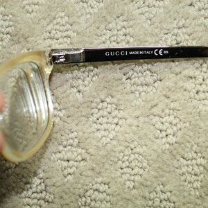 These beautiful Gucci glasses frames are ready for your prescription! Both classic and stylish the tortoiseshell frames are a rectangular oval shape. The earpieces are metal with a tortoiseshell coating the ends and the the interlocking GG engraved on the temple. Comes with a brown web embossed case that snaps closed to keep your glasses safe while not on.