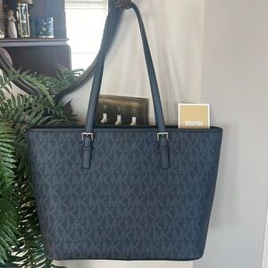 Brand New Michael Kors Black Top Zipper Double Strap Shoulder Bag Jet Set Tote