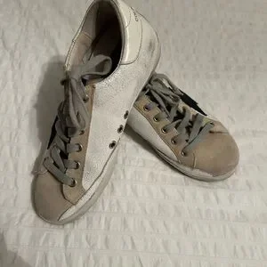 Golden Goose Private Edit sneakers with a bold Navy star on beige and white leather. Ideal for everyday style. Size 36 US 5.5/6. Great condition.