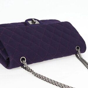 CHANEL Matelasse 2.55 Double Flap Chain Bag Cotton Purple CC Auth 127929M