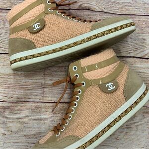 Chanel 2020 Model Tweed High-Cut Sneakers Pink