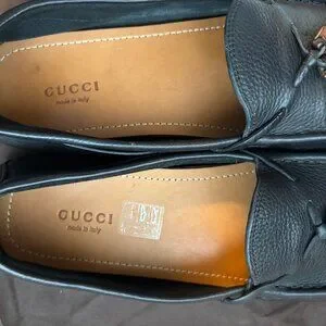 GUCCI HEBRON NERO Leather Bamboo Loafers - Size 8 1/2 (8.5) - Black.