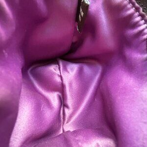 Coach Madison Brown Satin Fabric Wristlet Leather Trim Horse & Carriage Emblem