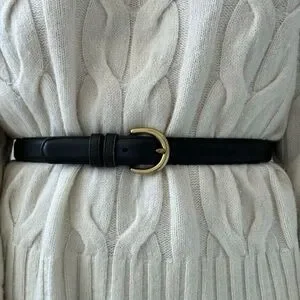 Elegant black leather belt. Features a gold buckle. Perfect for any outfit. Size small/x-small.