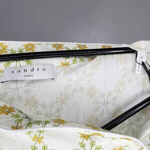 Sandro Magy Floral Jacquard Mini Dress Ivory Long Sleeve Shirtdress