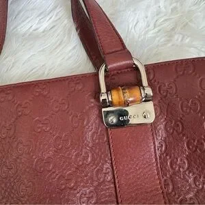 Authentic Gucci Guccissima GG Burgundy Wine Red Tote Bamboo Leather Bag ♥️