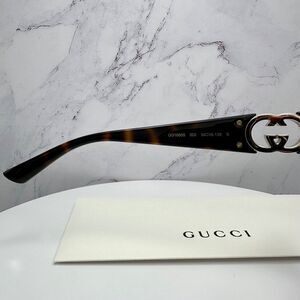 2,500 + Satisfied Customers with Positive Selling Reviews AUTHENTICITY GUARANTEED 100% ORIGINAL and BRAND NEW CURRENT COLLECTION GUCCI - 100% Authentic! * As seen on Hailey Bieber & Done In Collaboration! Sale Includes: Gucci Case Color May Vary With Purchase * Gucci Hard Case * Gucci Travel Case * Gucci Certificate of Authenticity * Gucci Polish Cloth * Gucci Kering Care Material Item Details: * Brand: Gucci * Condition: Brand New Gucci Sunglasses - 100% Authentic * Brown Oval Acetate Frame * Tortoise Shell Brown Frame * Interlocking GG Logo on both sides * Gold GG Metal Logo on both sides * Brown Lens * Unisex Eyewear * Unique Serial Number etched to confirm authenticity * GUCCI Logo engraved in lens * 100% UVA/UVB Protection * Made In Japan * Measurements(mm): Lens/Bridge/ Temple 54-16-135 100% Authentic - 100% Positive Feedback - Trusted Seller! Daily Shipping - Shop Now Discounted Luxury Designer Items - Great Gift! 677 Gucci Sunglasses Sale
