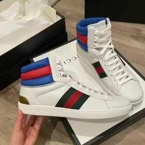 NIB Authentic Calfskin Web Mens Ace High Top Sneakers