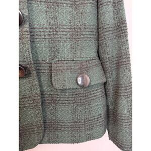 Vintage Christian Dior 90s Plaid Tweed Green Womens 4 Blazer Classic Made In USA