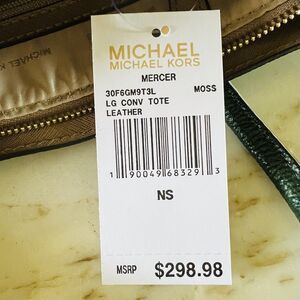 MICHAEL KORS STUDIO Mercer Moss Green Leather Large Convertible Tote Bag