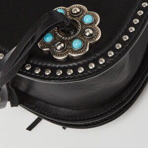 Prada Black City Calf Leather Turquoise Studded Folk Corsiere Crossbody Bag 1...