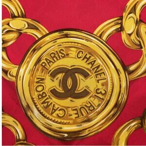 Vintage Chanel silk square scarf with a red background