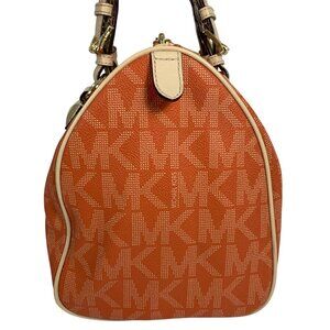 MICHAEL KORS Grayson Medium Satchel Signature Bag Tangerine Orange w/ Bag Charm