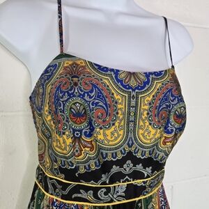 Sandro Riana satin paisley pleated sleeveless maxi dress.