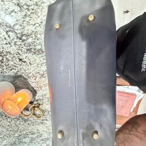 Length: 15.75" Height: 11.5" Width: 6.0" Materials Natural grain leather Fabric lining Handle Handles with 4.5" drop Strap Detachable strap with 21.5" drop for shoulder or crossbody wear Features Inside snap pocket Zip-top closure Fits a 13" laptop Four protective feet at base