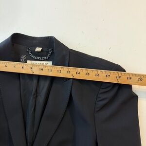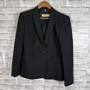 Burberry London Designer Solid Black Wool Stretch Blazer Suit Set Womens Size 14