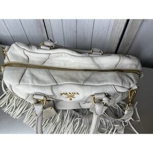 Prada Taupe Gold Leather Antik Cervo Fringe Large Bowler Bag Top Handle