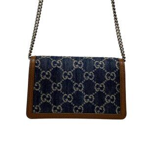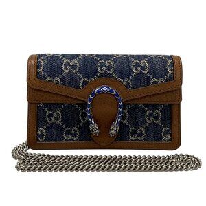 Auth GUCCI Dionysus/GG 476432 Navy Brown Denim Leather Shoulder Bag PRODUCT INFORMATION Actual Colors may slightly differ depending on your PC monitor and lighting environment. Accessories Box Dust Bag Key Ring Note Other [ Other item specifics ] [ Design ] Exterior pocket : None Interior pocket : None Chain shoulder Mini bag [ ConditionDescription ] [Outside] overall :small scratches / lightly soiled / slightly losing shape / metal coat peeling bottom :Slightly rubbed corners main opening :Slightly rubbed corners [Inside] overall :small scratches / lightly soiled(also has fluffing) [Note] Storage smell presentAccessories damaged.(Box and key ring have scratches and stains) [ Measurements ] Height : 3.94 inch (10 cm) Width : 6.1 inch (15.5 cm) - 6.5 inch (16.5 cm) Depth : 1.57 inch (4 cm) Shoulder Strap : To the main body approx. 22.83 inch (maximum length if adjustale) Weight : 315g Note. Shoulder Strap/Handle length - Maximum measurement of a bag's shoulder strap/handle is measured by the strap drop ( Height is calculated by measuring from top of the bag (at center) to the peak of the strap/handle). However the shoulder strap length of a backpack is calculated by measuring from end to end.
