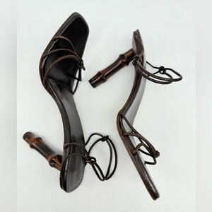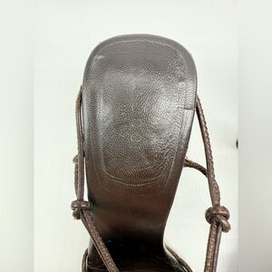 Gucci By Tom Ford Dark Brown Leather knotted Strappy Bamboo Heel sandals 9.5