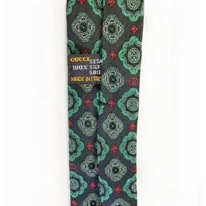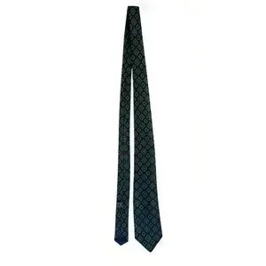 VTG GUCCI 100% Silk Tie Navy Green Medallion Print Vintage 1990s Made In Italy