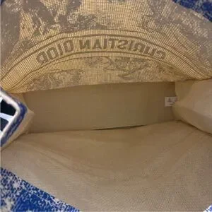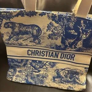 This brand new GWP/VIP chic Christian Dior Dioriviera Raffia Tote Bag features the Dior animal print design in Blue and Cream and opens to a large pocket tote with the Dior hang tag on raffia string. Two cream colored handles with an approx hang length of 9โ