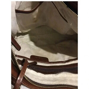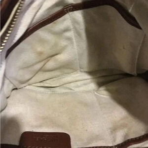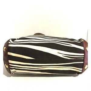 Michael Kors beige black canvas shoulder handbag with brown leather strap and trim with gold tone hardware main compartment 5 pockets at interior wall 1 zip closure pocket at both side logo at front fabric lining exterior & lining have some stains hight 10.5” wide 15.5” depth 4.5” strap drop 10”The dimensions are based on approximately measurements before placing an order please check take a moment to view all photos using feature for a closer look