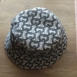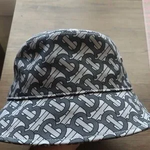 NWT Burberry TB Monogram Gray Bucket Hat size Small