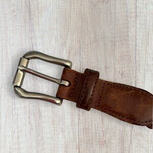 Features supple full-grain leather with a hand-woven braid design and solid silvertone buckle.