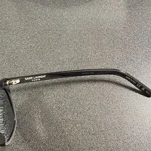 Elegant black eyewear by Saint Laurent. SL716 slim color 001 small blemish in upper inner left side of frame as photographed.