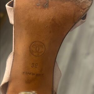 Stylish CHANEL sandals with elegant straps. Ideal for chic outings. VINTAGE. Authentic!!! Pet free, smoke free home! Make me an offer. Very light soft purple color. Has a metal plate that says CHANEL. Heels can be easily replaced with a shoe repair for a small cost.