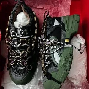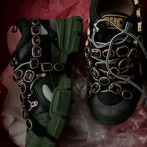 Gucci Black and Green Embellished Sneakers