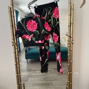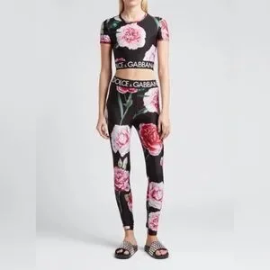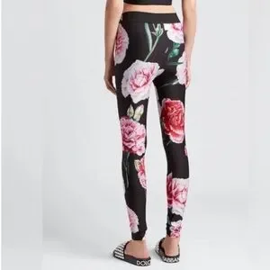 Dolce & Gabbana Black and Pink Rose Leggings